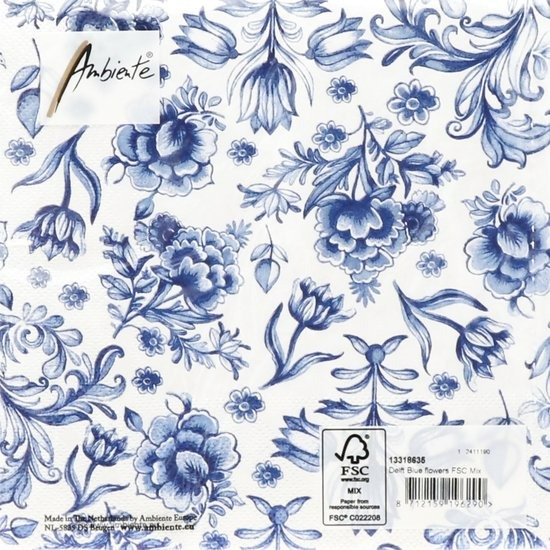 Napkin 33 Delft Blue flowers