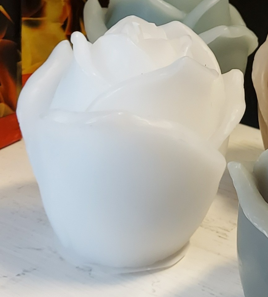 Prachtige kaars in bloem vorm (niet geurend) in witte kleur.